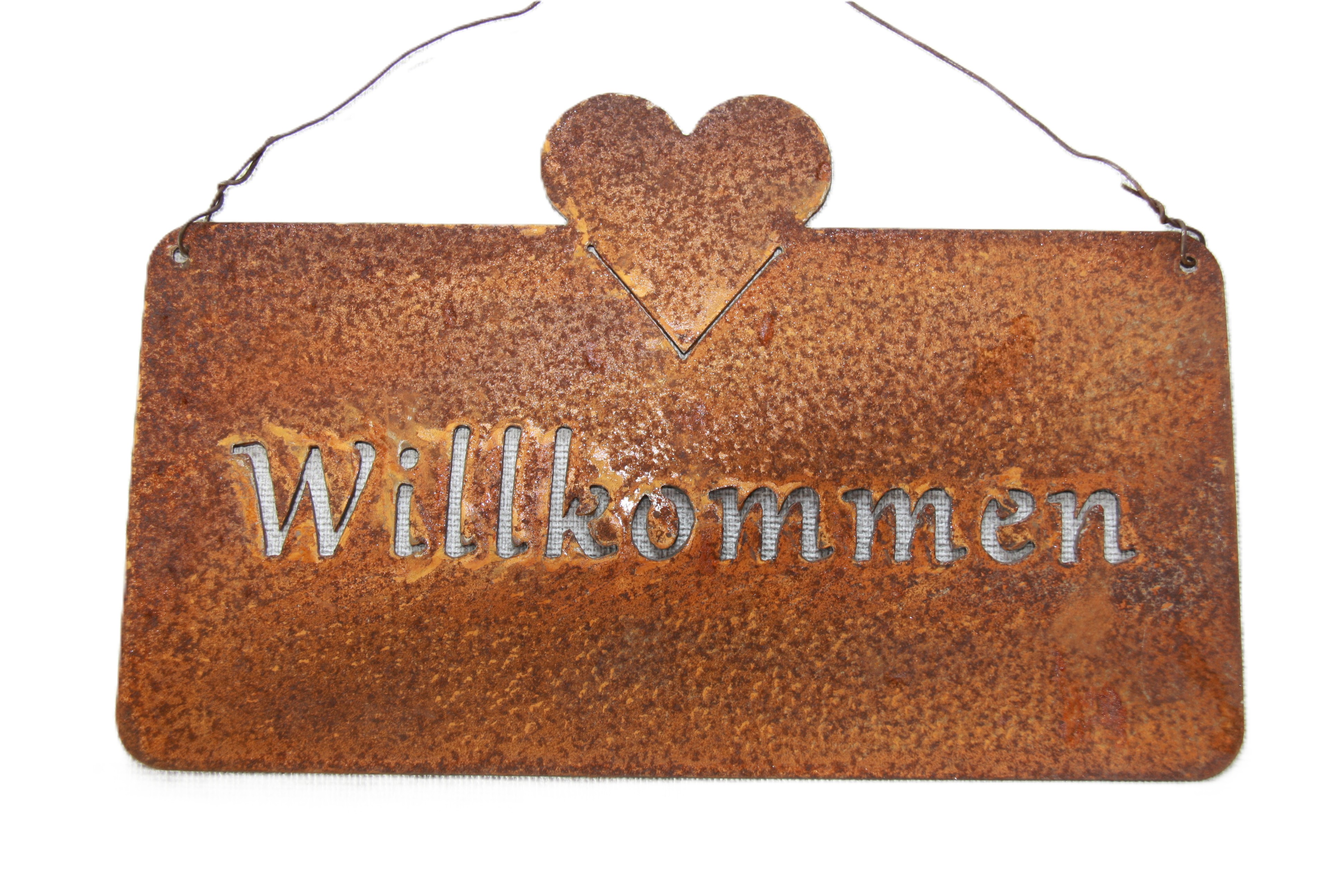 Schild aus Metall/Rost mit Spruch Willkommen